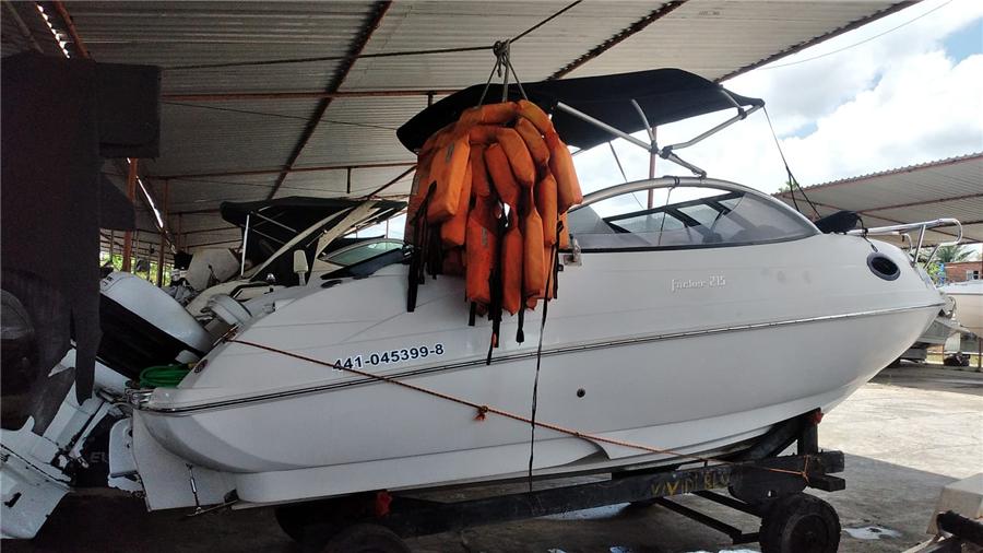 Lancha focker215 2007, usada, com motor Yamaha 150hp 2t, localizada na marina Ocema.