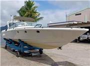 CÓD 5653 PANTHER 33: 1988, 2 x vp aqad 40b 180hp, diesel, 720hs de uso, 33 top e 22 cruzeiro, rabetas vp 275, âncora, antena de vhf, (3) baterias, bomba de água doce, (3) bombas de porão, bússola, buzina, capota, carreta de encalhe, cd player, chuveiro, (10) coletes, defletor de radar, (2) extintores, geleira, rádio vhf, sanitário comum, strobolight... F/c. Nunes (13)99706-0395