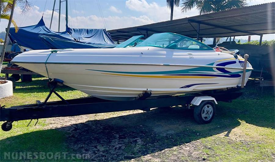 CÓD 0810 FOCKER 190: proa aberta, 2001, evinrude 115hp, gasolina, 260hs de uso, 38 top e 26 cruzeiro, âncora, bateria, bomba de água doce, bomba de porão, bússola, capa, capota, carreta rodoviária, chuveiro de popa, (4) coletes, (2) cooler, extintor... F/c. Nunes (13)99706-0395