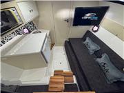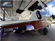 ACESSÓRIOS: Salvatagem completa, vaso sanitário elétrico, guincho elétrico, som premium com alto falantes marinizados, carreta de encalhe com pneus de empilhadeira, microondas, frigobar, piso em eva, porta copos, gps com sonda, defensas, churrasqueira, ventiladores e buzina.