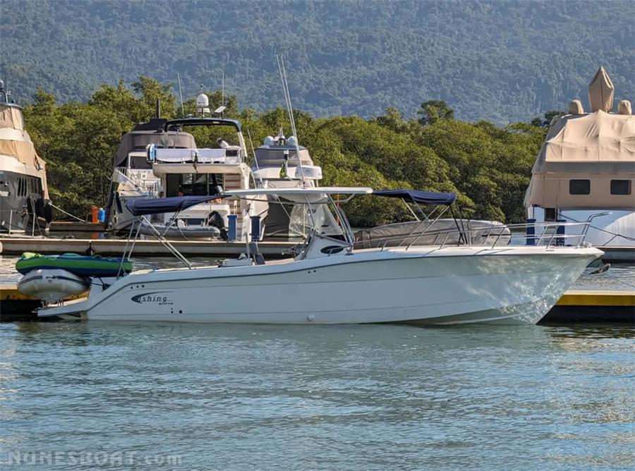 CÓD 5200 FISHING 32: modelo open, 2008, 2x vp d3 220hp, diesel, rabetas vp 295 dp, 200hs de uso, 45 top e 24 cruzeiro, âncora, antena de vhf, bateria, bomba de água doce, (3) bombas de porão, bússola, buzina, capota, carreta de encalhe, cd player, churrasqueira a gás, chuveiro, (13) coletes, defletor de radar, direção hidráulica, farol, flap hidráulico, geleira, gps c/plotter, guincho elétrico, (2) rádios vhf, sanitário elétrico, som, sonda... F/c. Nunes (13)99706-0395